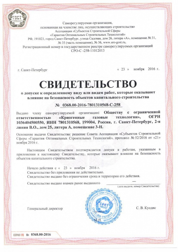 ООО «Криогазтех» в своей деятельности использует современные российские и международные технологии с учетом требований действующих нормативных документов Госстандарта и Ростехнадзора, законодательных актов и постановлений федеральных органов.
